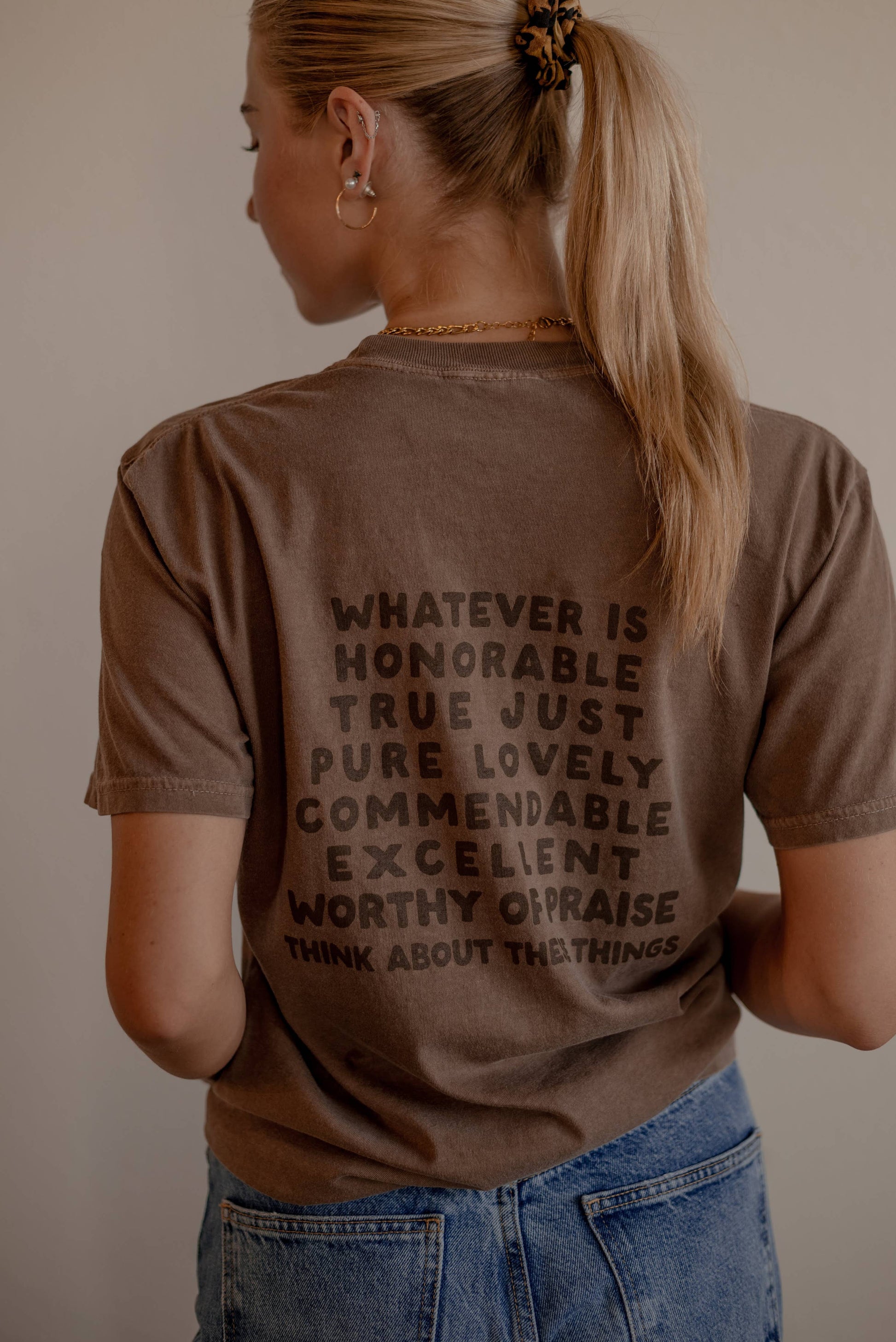 Comfort Colors Tee in Espresso Brown. Garment dyed, soft-washed fabric for that lived in feel and almost no shrinkage. Relaxed fit with seamless body. Made of 100% soft ring spun cotton. Topstitched, classic width, with rib collar. Made with OEKO-TEX certified low-impact dyes and proud member of the U.S. Cotton Trust Protocol. Screen printed in Texas