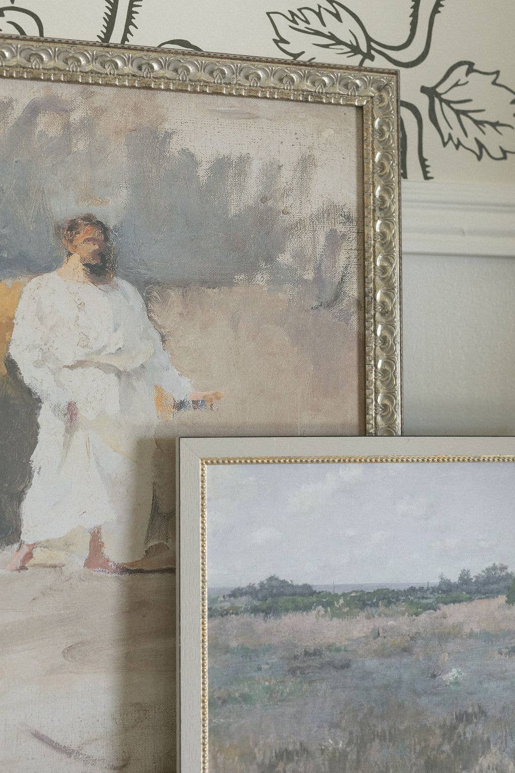 Vintage art printed on textured canvas then placed in a handcrafted antique frame for a timeless look. This is an authentic reproduction of the original artwork. Includes paper backing and hanging hardware. Glass-Free Design: Keeps the artwork lightweight and true to its original texture. Made in the USA: Proudly crafted with quality and care. Care Instructions: Keep canvas dry to maintain its quality. If smudged or dirty, gently wipe with a dry, soft cloth.